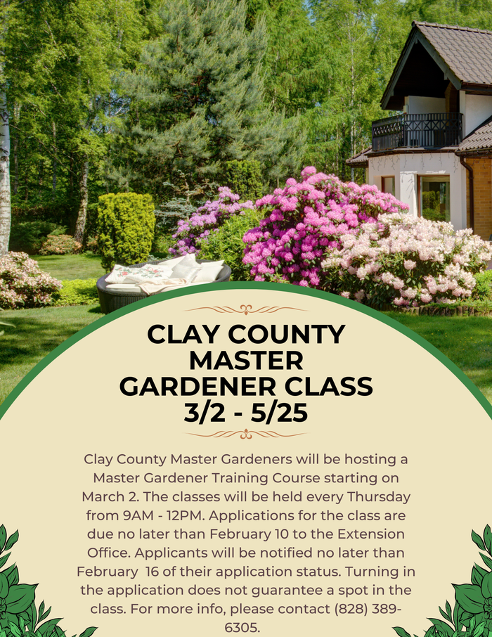 Extension Master Gardener℠ Volunteer Association of Clay County is happy to announce its upcoming Master Gardener Training Course.